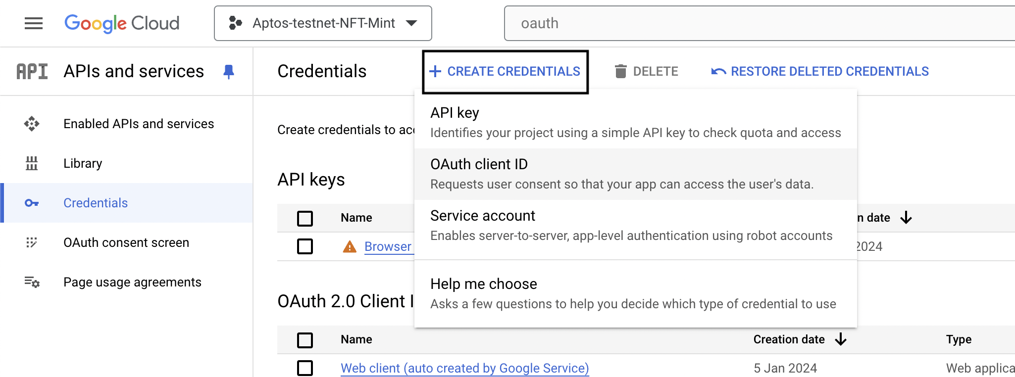 2. Click on “Create Credentials” and select “OAuth client ID.”
